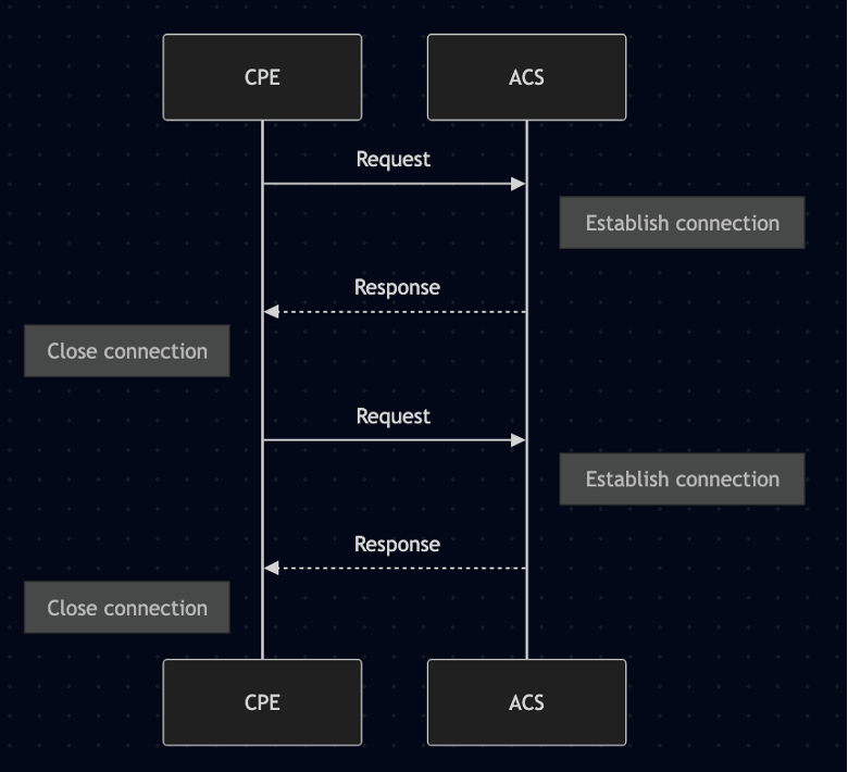 A. HTTP Connection Request (Standard): If the CPE has a public IP address, the ACS sends an HTTP request to the device’s ConnectionRequestURL. The CPE authenticates the request and initiates a session back to the ACS.