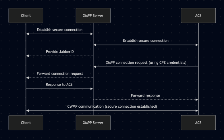 C. XMPP (Annex K): For high-security or real-time environments, XMPP allows persistent connections via a messaging server. The ACS sends a lightweight message to trigger immediate communication.
